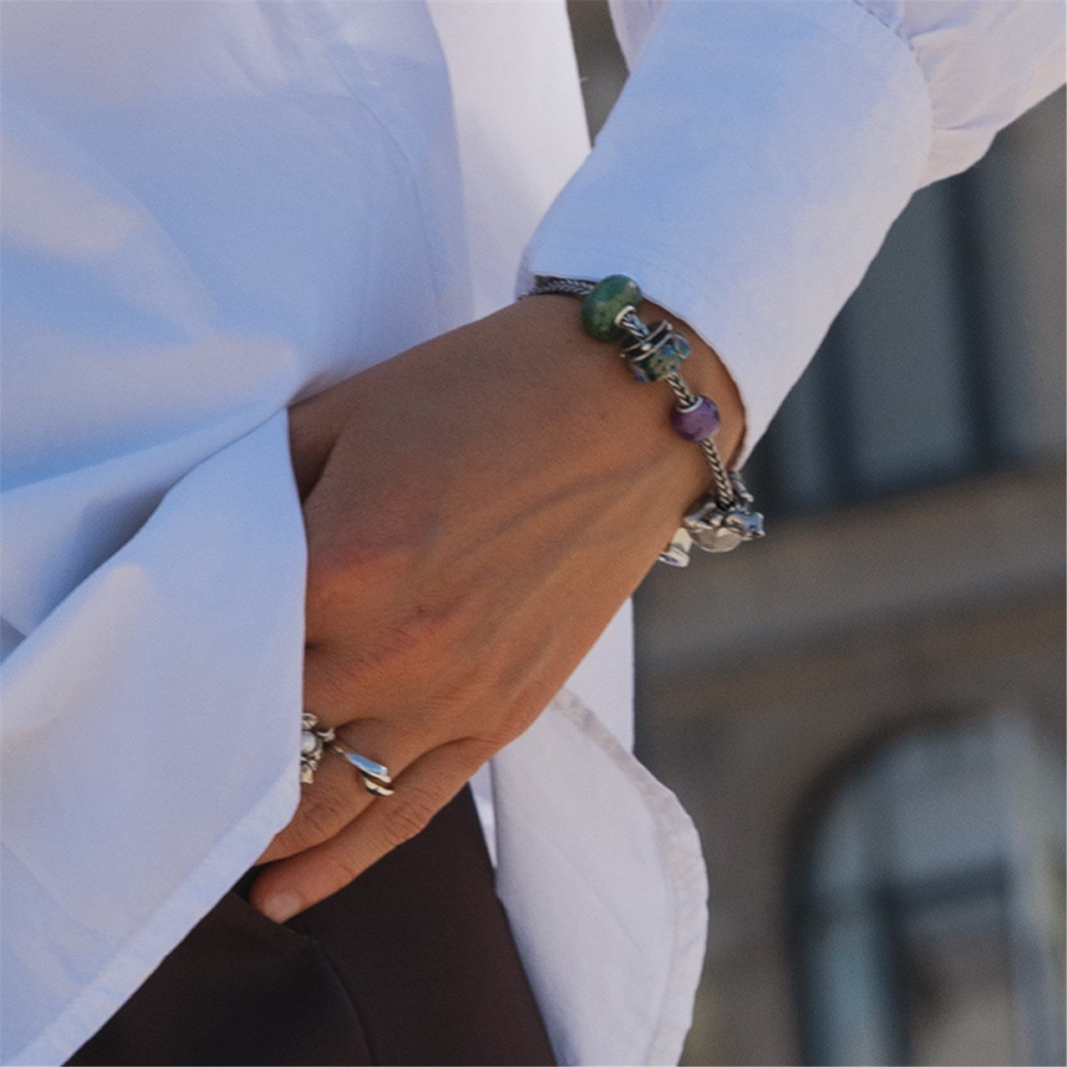 Izberite velikost zapestnice, igrajte se z oblikovanjem tako, da dodajate različne obeske, dokler ne ustvarite želenega videza. Za konec dodajte še zaponko, da obeske varno pritrdite.